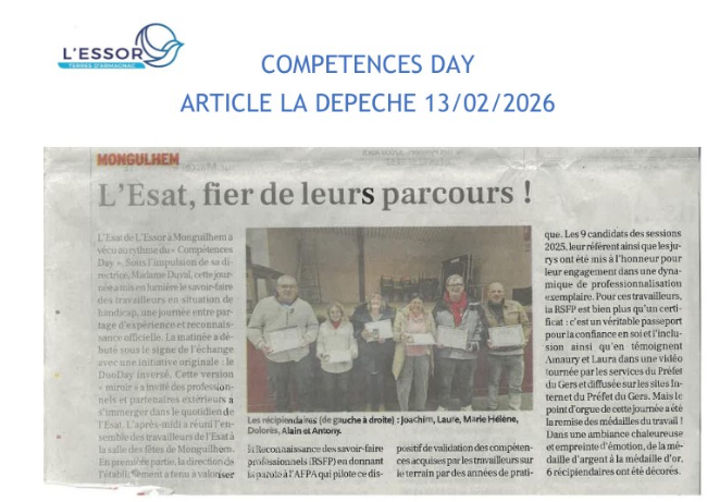 L’ESAT de L'ESSOR Terres d’Armagnac a récemment vécu une journée particulièrement forte en sens et en émotions, réunissant trois temps forts autour d’un même objectif : valoriser les compétences et les parcours.